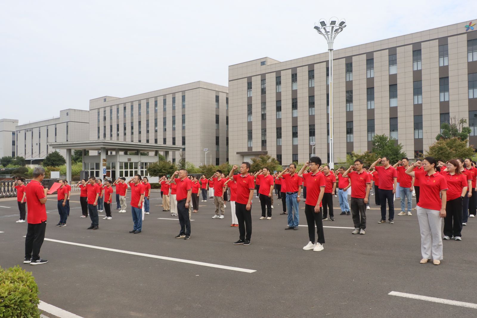 升旗礼毕,全体员工高举右拳,齐声宣誓:“面对挑战毫不畏惧,面对挫折绝不低头,面对失败永不言弃……”钱铿锵誓言回荡在每个园区,员工们目光坚定,展现出昂扬向上的精神风貌。